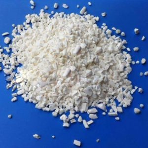 This purified substance is a white solid that is commercially available as pellets and shells.